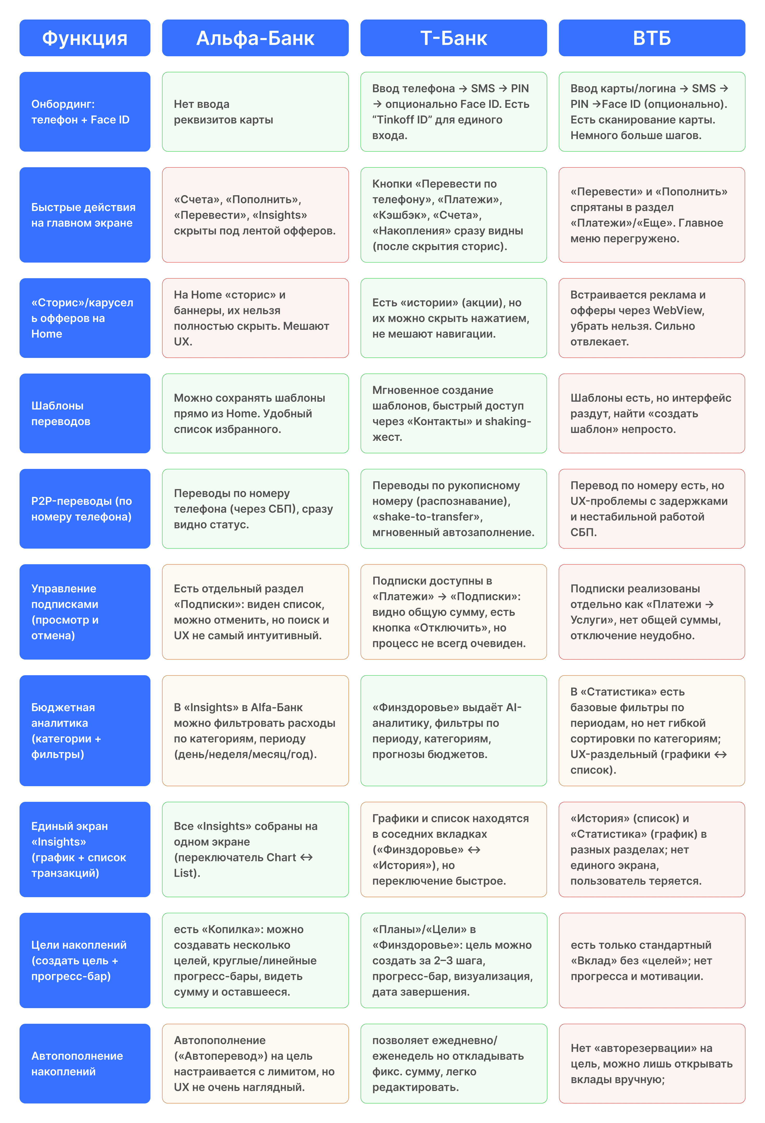 Конкурентный бенчмаркинг (Альфа-банк, Т-Банк, ВТБ) — анализ сильных и слабых сторон.