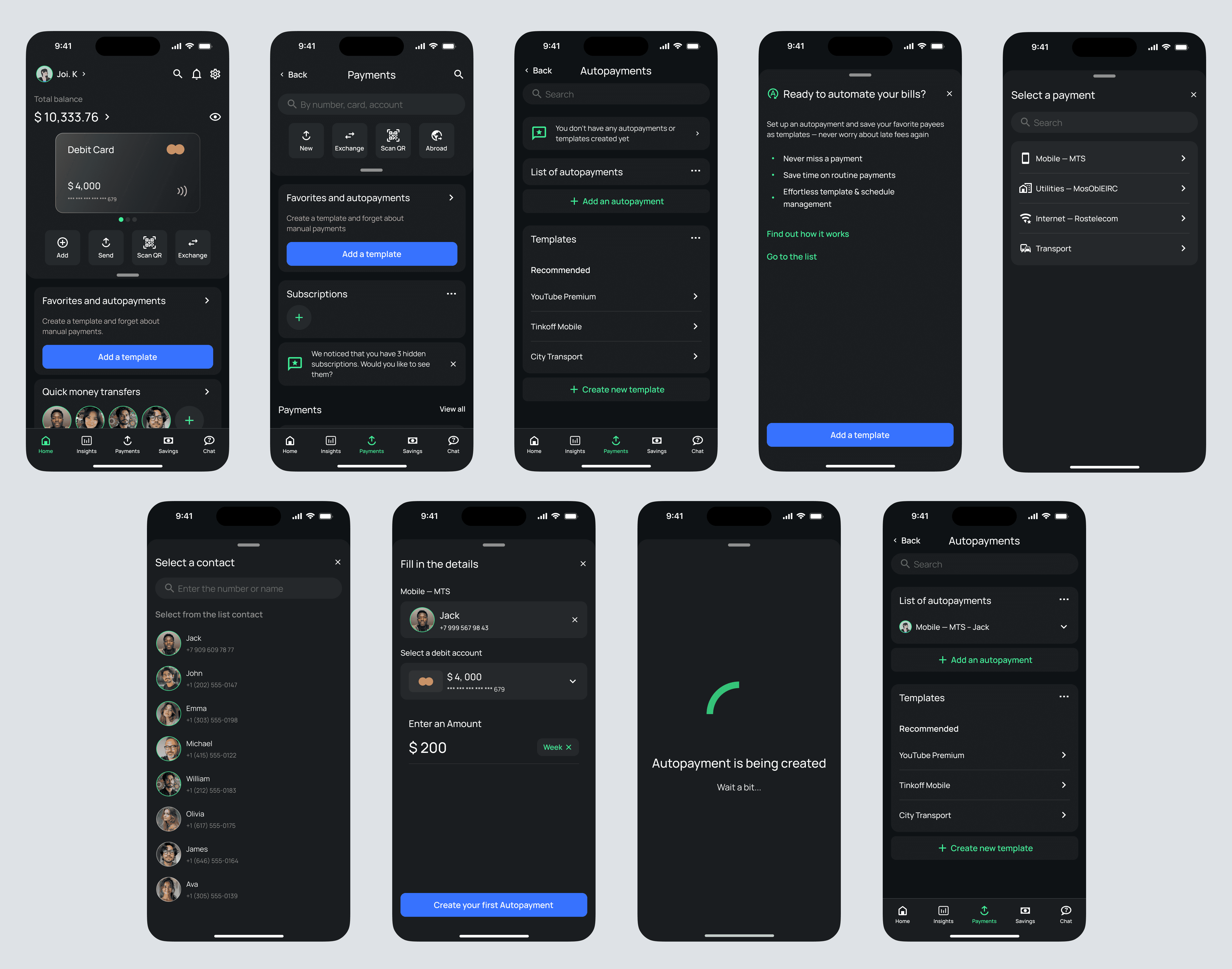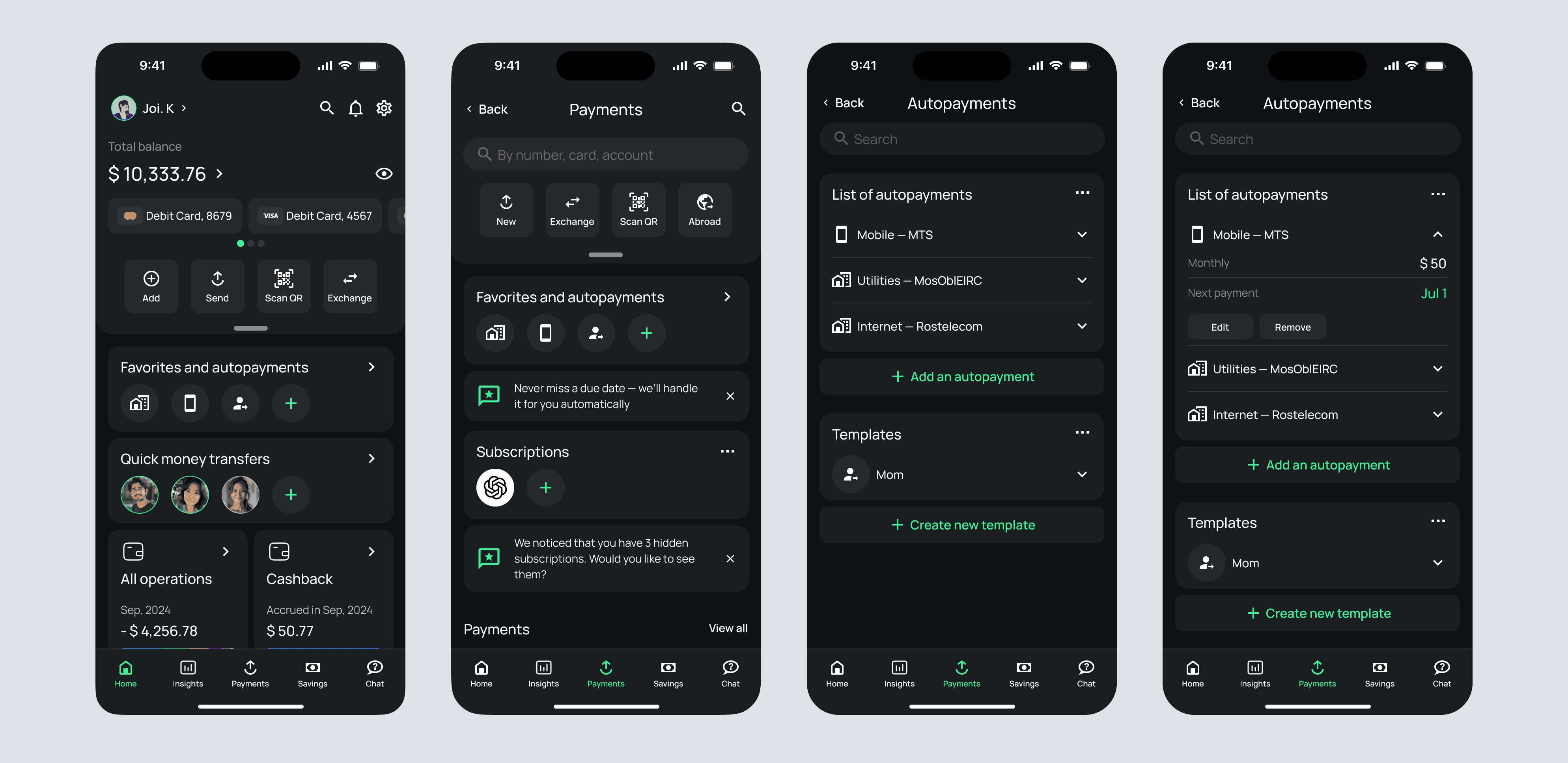 Для постоянных пользователей лёгкий доступ к редактированию и управлению уже настроенными автоплатежами и шаблонами без лишних переключений;